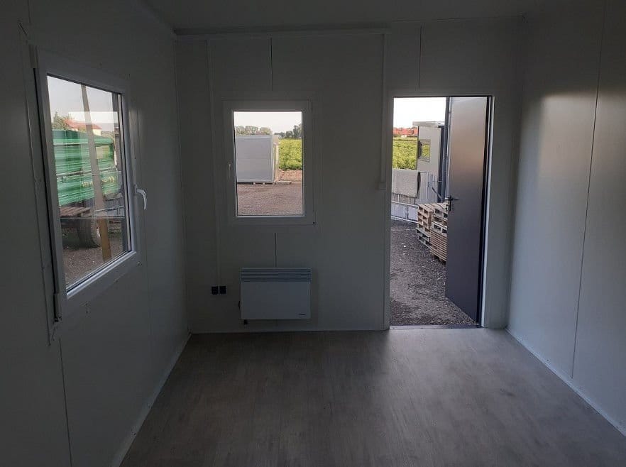 Collega semplicemente elettricità, acqua e acque reflue: subito pronto per l'usoCabina WC doppia 3×2 metri con serbatoio acque nere con wc e doccia– 2 finestre– Profilo sandwich da 80 mm termicamente isolato per una bassa perdita di energia– Porta esterna in lamiera d'acciaio Hörmann zincata– Orinatoi– Impianto elettrico completo secondo le direttive CE– Prese 230V– 2 plafoniere– Collegamento 11KW/400V– Rivestimento del pavimento in PVC – robusto e veloce da pulire– radiatore elettrico a parete– Serbatoio delle acque grigie- ScaleNoleggio possibile a tariffe mensili basse. Possiamo anche produrre in qualsiasi momento in altre dimensioni e colori secondo le vostre specifiche.