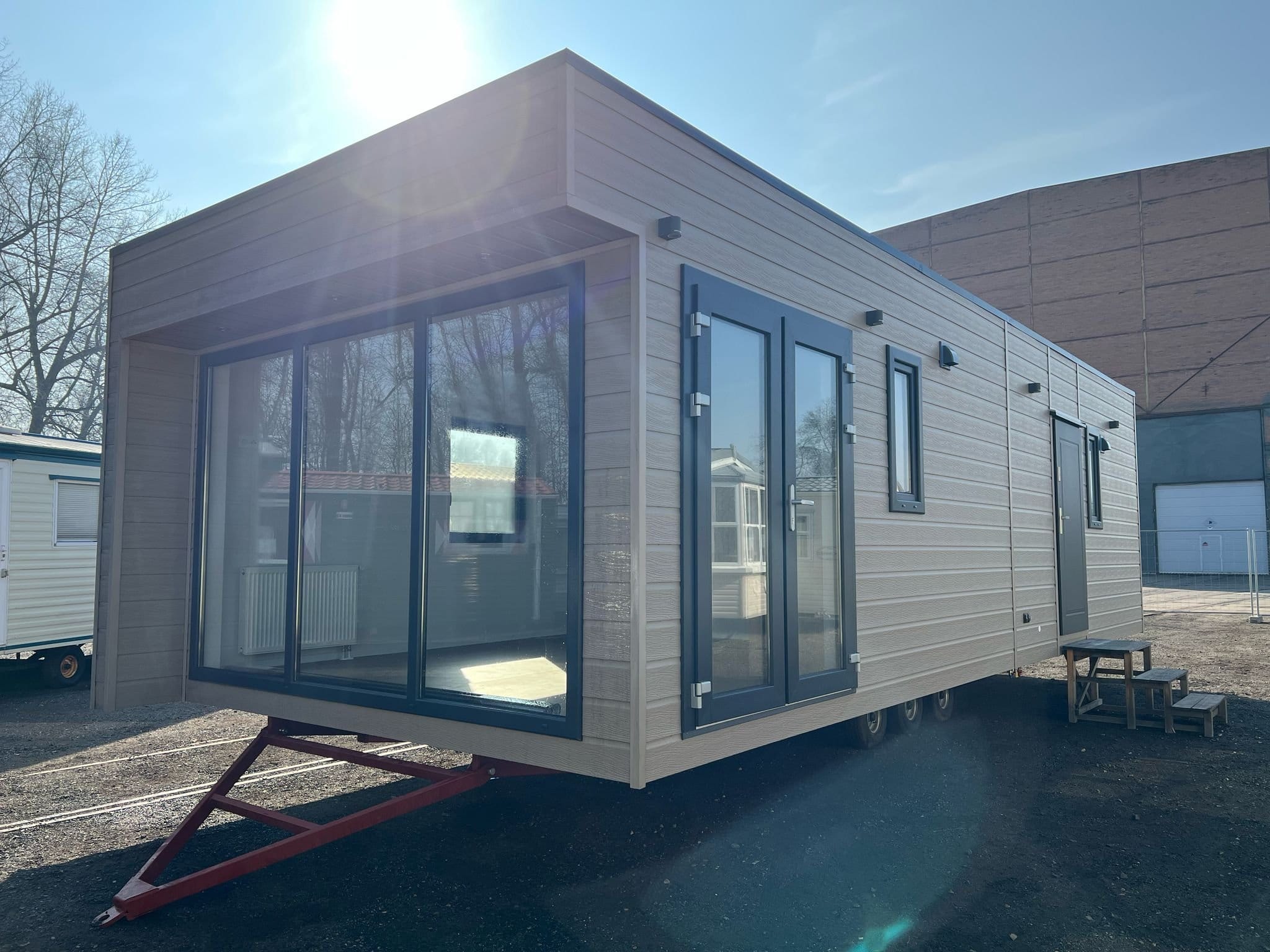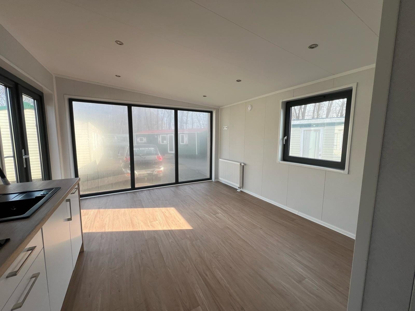 Foto contrattuali (Modulo venduto in perfette condizioni come presentato nelle foto)Le caratteristiche elencate di seguito sono le caratteristiche standard di questo modulo. Puoi effettuare un ordine direttamente se queste caratteristiche ti soddisfano. Per tutte le vostre esigenze di personalizzazione, contattateciSpecifiche:DimensioniDimensioni esterne (LxPxA): 4 m x 2,4 m x 2,6 mDimensioni interne (LxLxH): 3,8 mx 2,2 mx 2,35 mTetto: Copertura coibentata realizzata con pannelli sandwich composti da lamiere di acciaio zincato laccato RAL 9002 e anima isolante in poliuretano da 40 mm.Rivestimento: Pareti coibentate realizzate con pannelli sandwich composti da lamiere di acciaio zincato laccate RAL 9002 e nucleo isolante in poliuretano da 50 mm.Porta esterna: falegnameria in PVC (845 x 1960 mm. Serratura a 4 punti. 3 chiavi fornite).Finestre: 2 finestre standard, doppi vetri – infissi in PVC, 970x1200 mm, 1 anta apribile.Pavimento: telaio in acciaio zincato (rinforzo 200 kg/m²) e pavimento costituito da un pannello in fibrocemento da 16 mm non infiammabile e imputrescibile, non isolato. Rivestimento per pavimenti in PVC per uso pubblico, imitazione parquet.Alimentazione elettrica:– 1 quadro 220V/50Hz con magnetotermici– Cablaggio a superficie– 2 prese elettriche 16A+T– 1 rilevatore di fumoIlluminazione:– 2 pannelli LED interni– 1 striscia LED esterna.– 1 doppio interruttore